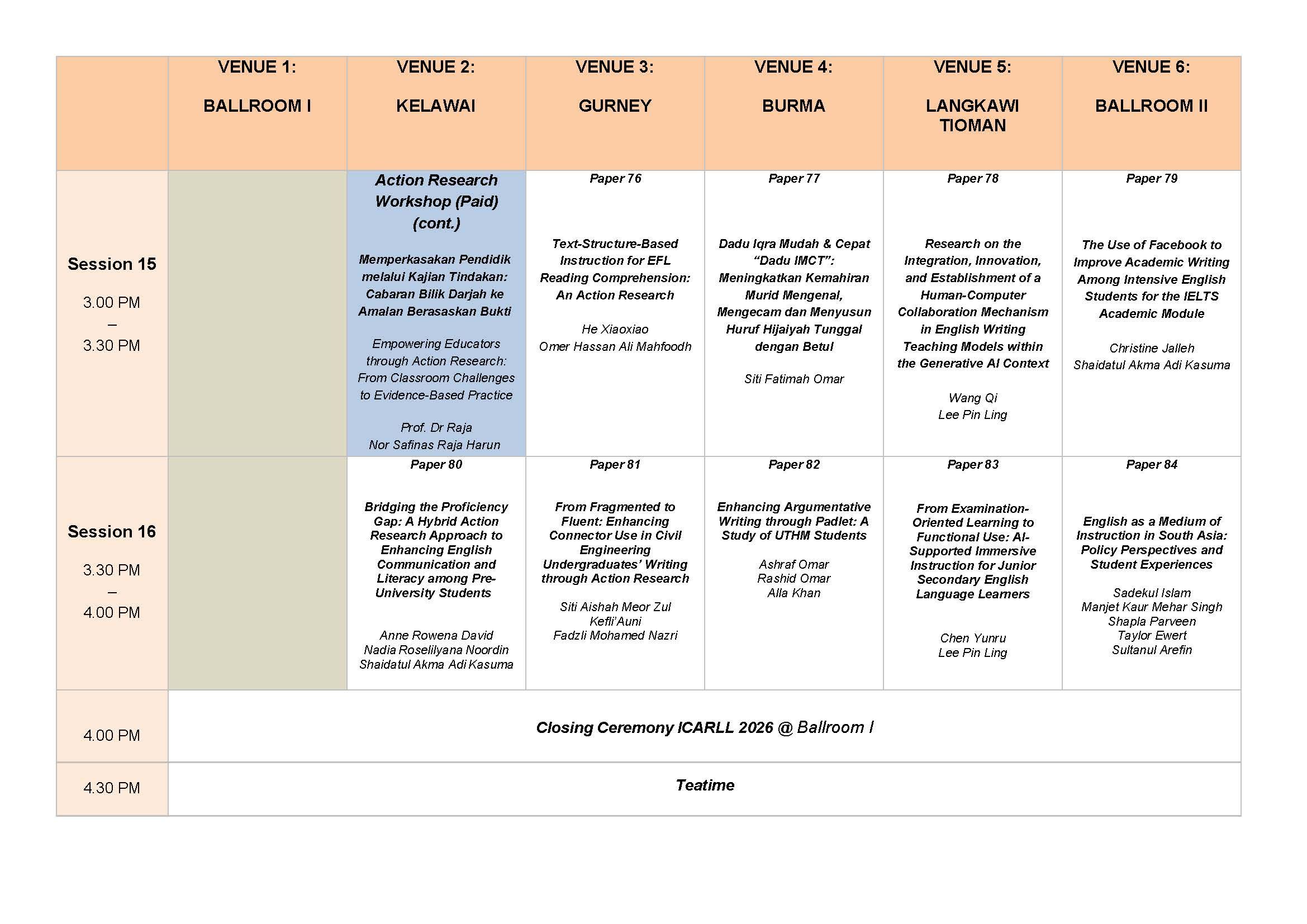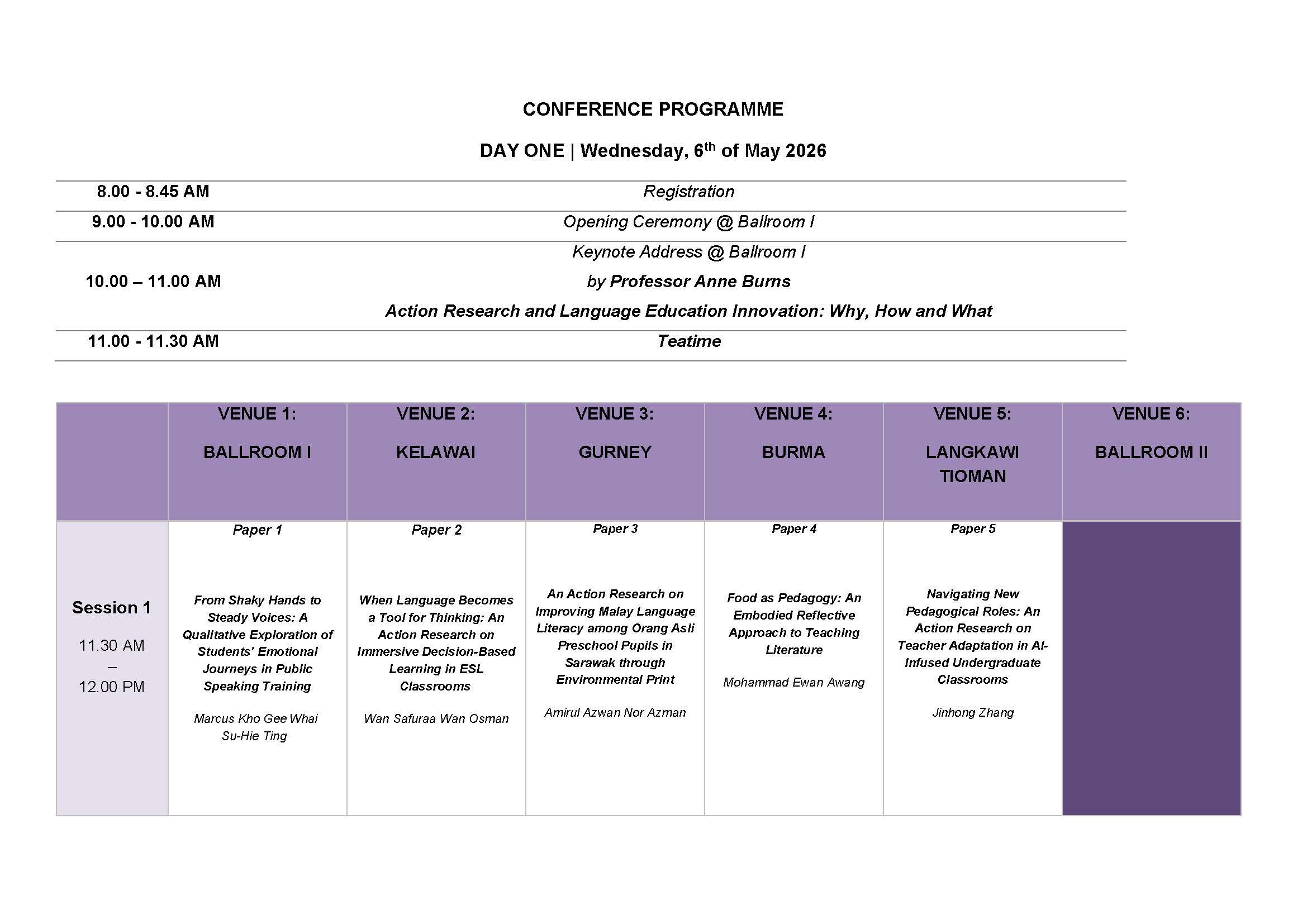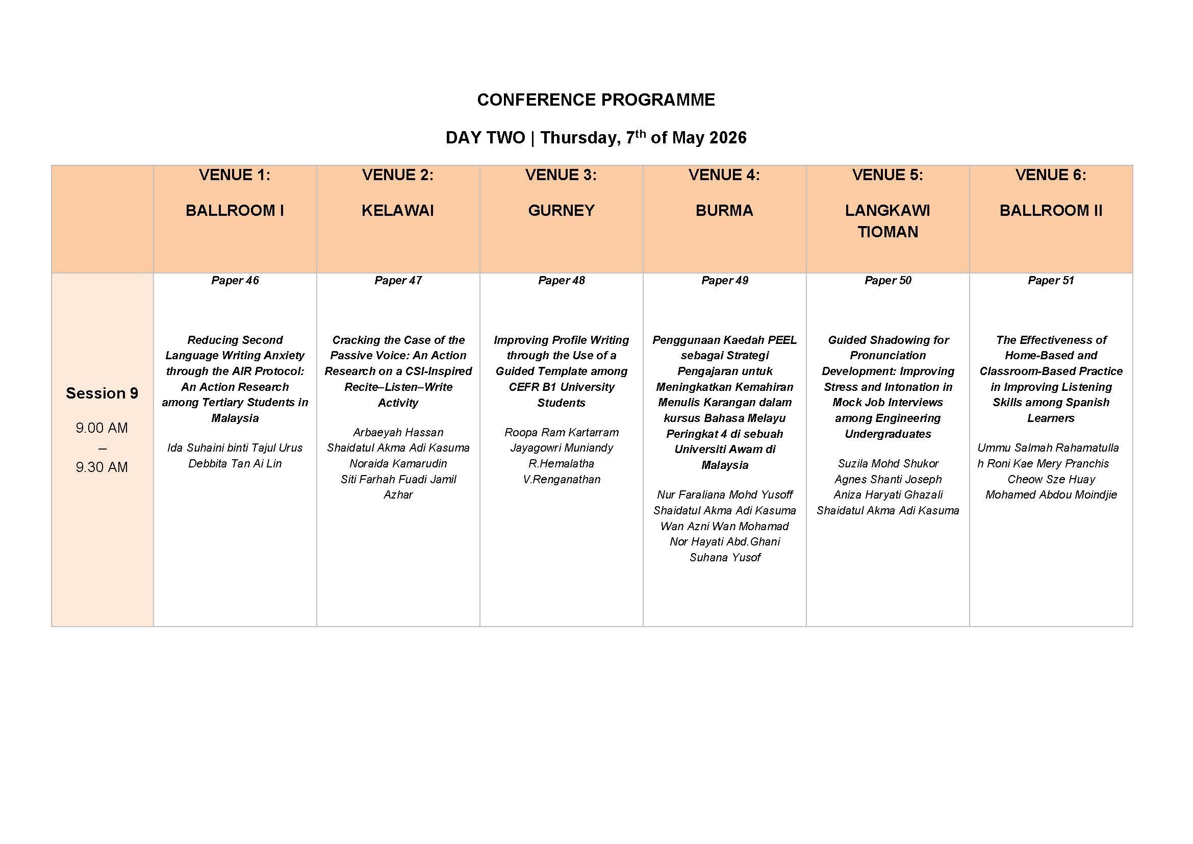 [Programme Schedule]