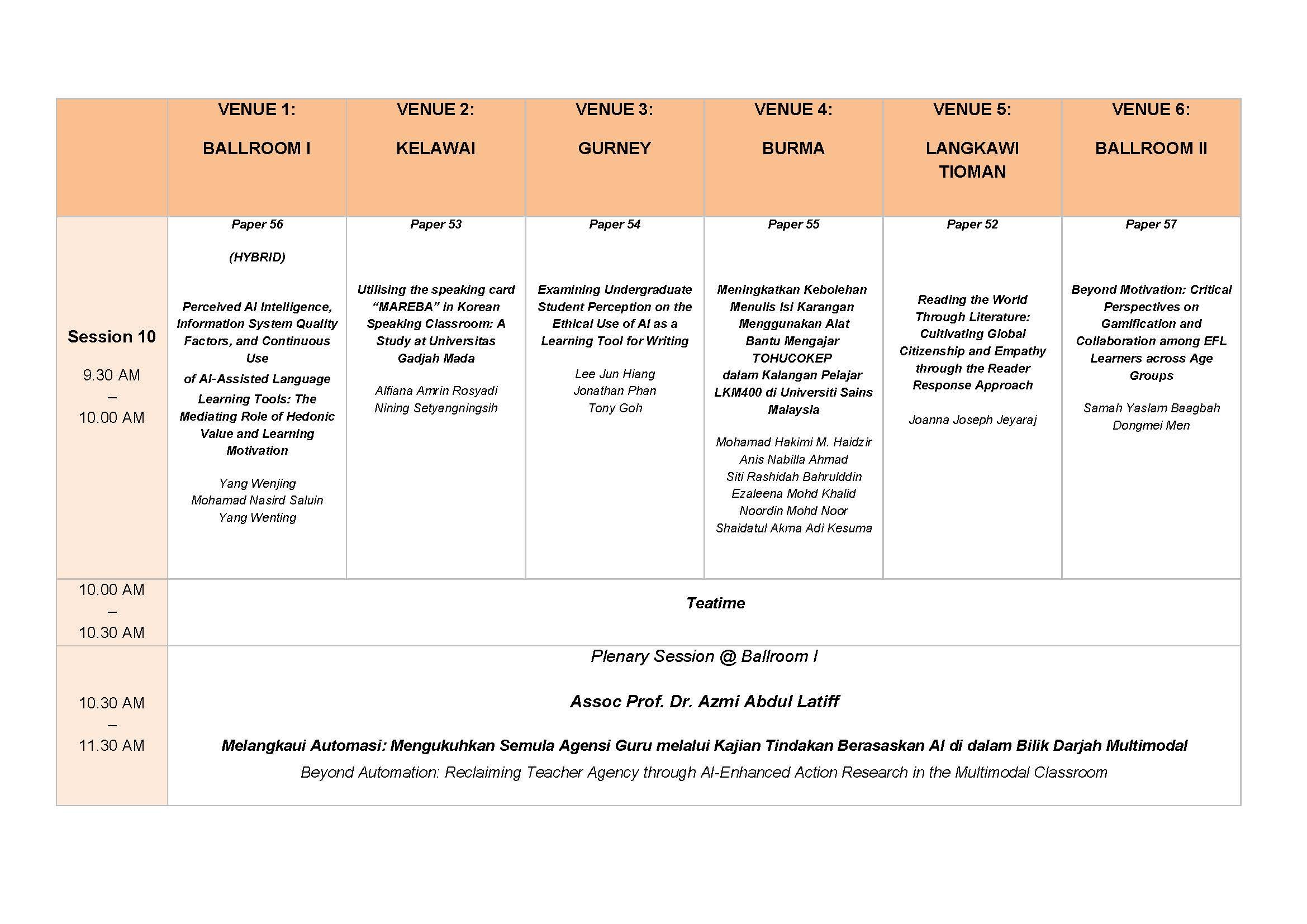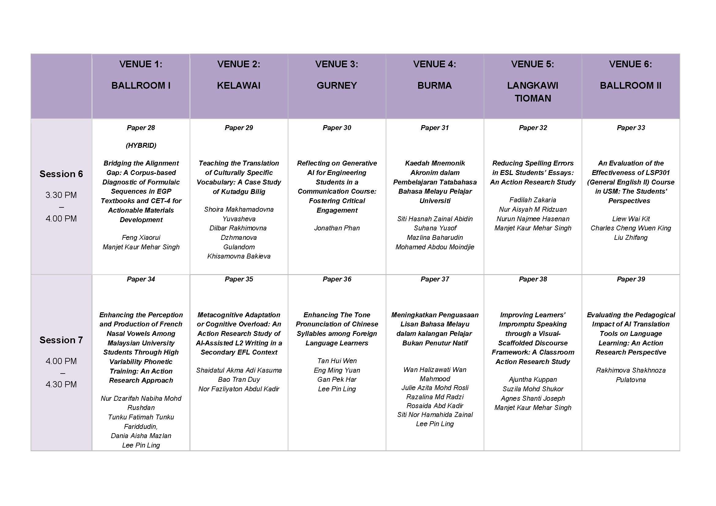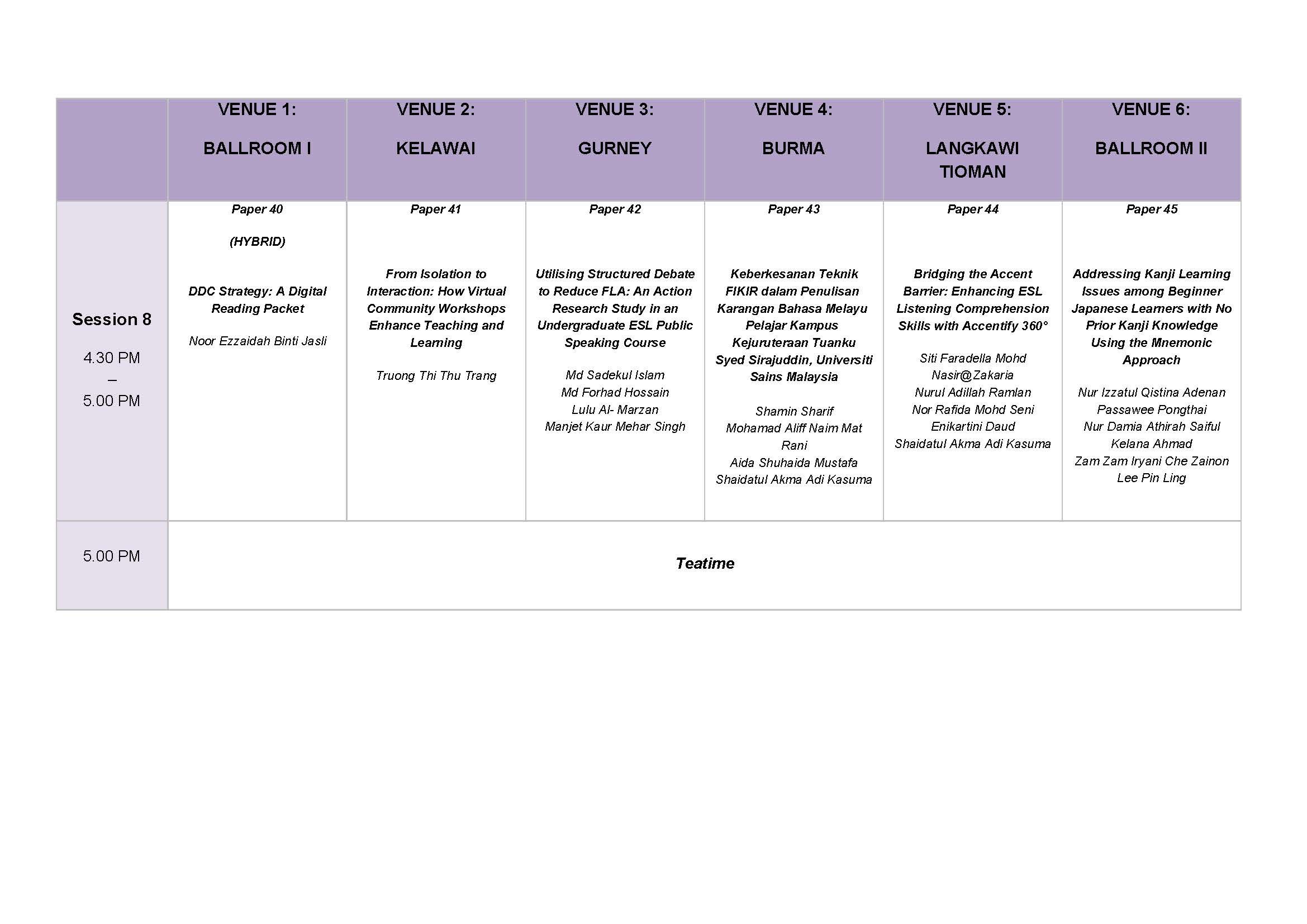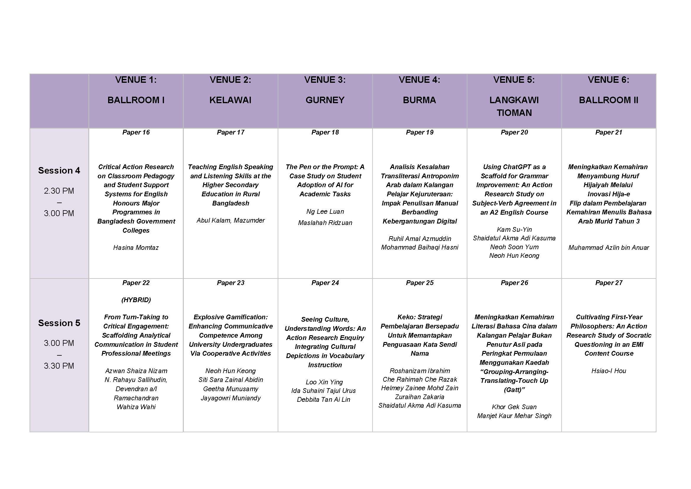 [Programme Schedule]